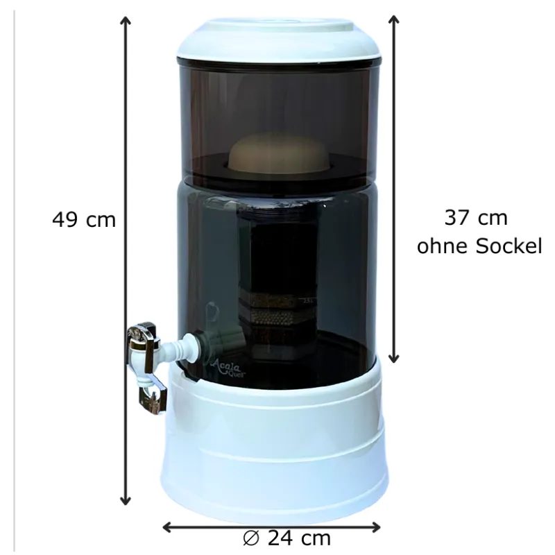 Der AcalaQuell® Mini ist der kompakteste unserer Wasserfilter und passt selbst in kleine Küchen, Büros oder Ferienwohnungen. Mit nur 24 cm Durchmesser findet er in jeder Nische Platz – und liefert reines, weiches Trinkwasser in bester Qualität.