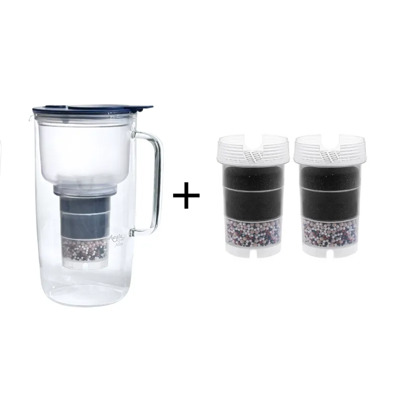 Dieses Paket macht Ihnen den Einstieg mit der AcalaQuell® Mira Wasserfilterkanne aus Glas leicht und zuverlässig. Sie erhalten die Glaskanne mit einer Kartusche und einem Mikroschwamm – zusätzlich zwei Ersatzkartuschen inklusive. Damit sind Sie für etwa sechs Monate versorgt.