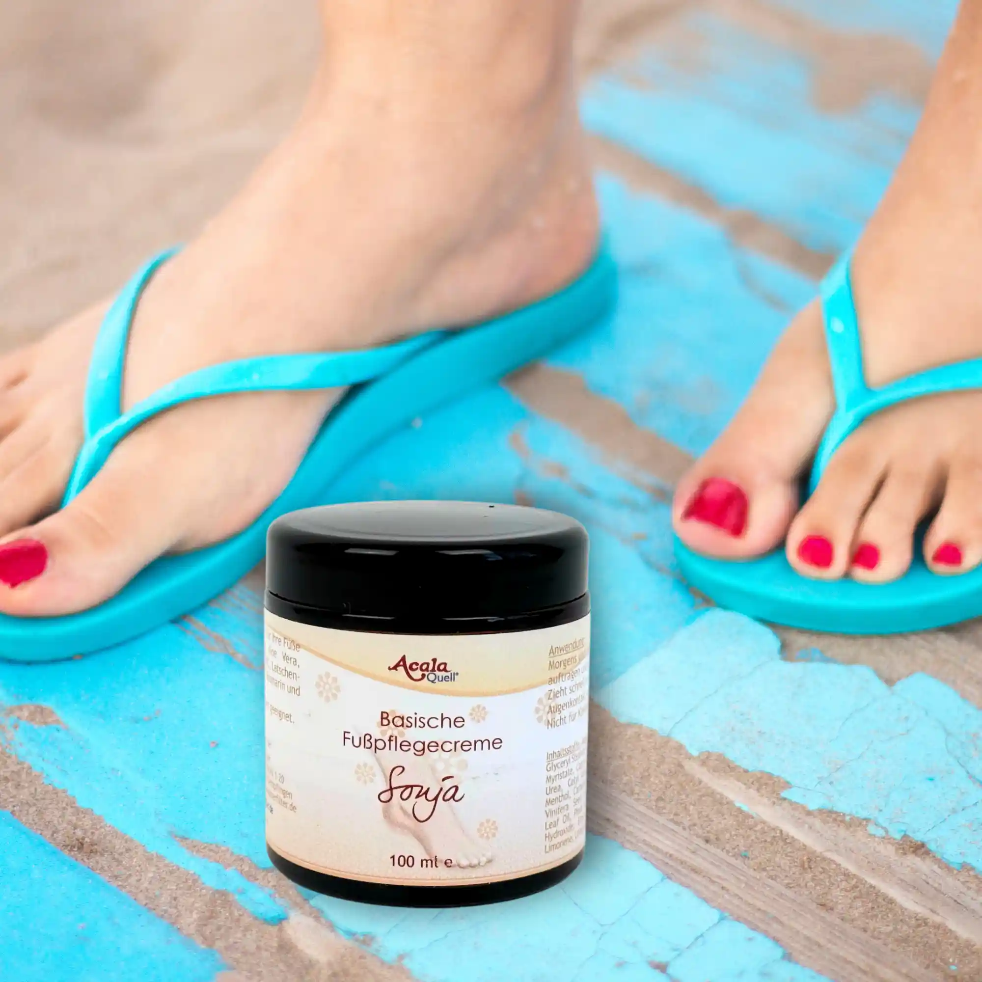 Erlesene Natur-Wirkstoffe pflegen und schützen Ihre Haut. Die tiefenwirksame, basische Feuchtigkeitspflege sorgt für spürbar mehr Wohlbefinden Ihrer Füße.